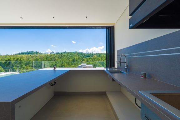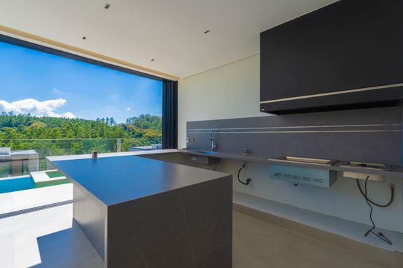 * Área gourmet com churrasqueira, chapeira e infra para chopeira