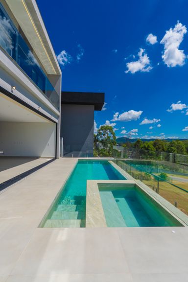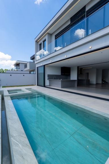 * Piscina e jacuzzi com aquecimento e controle touch via Wi-Fi